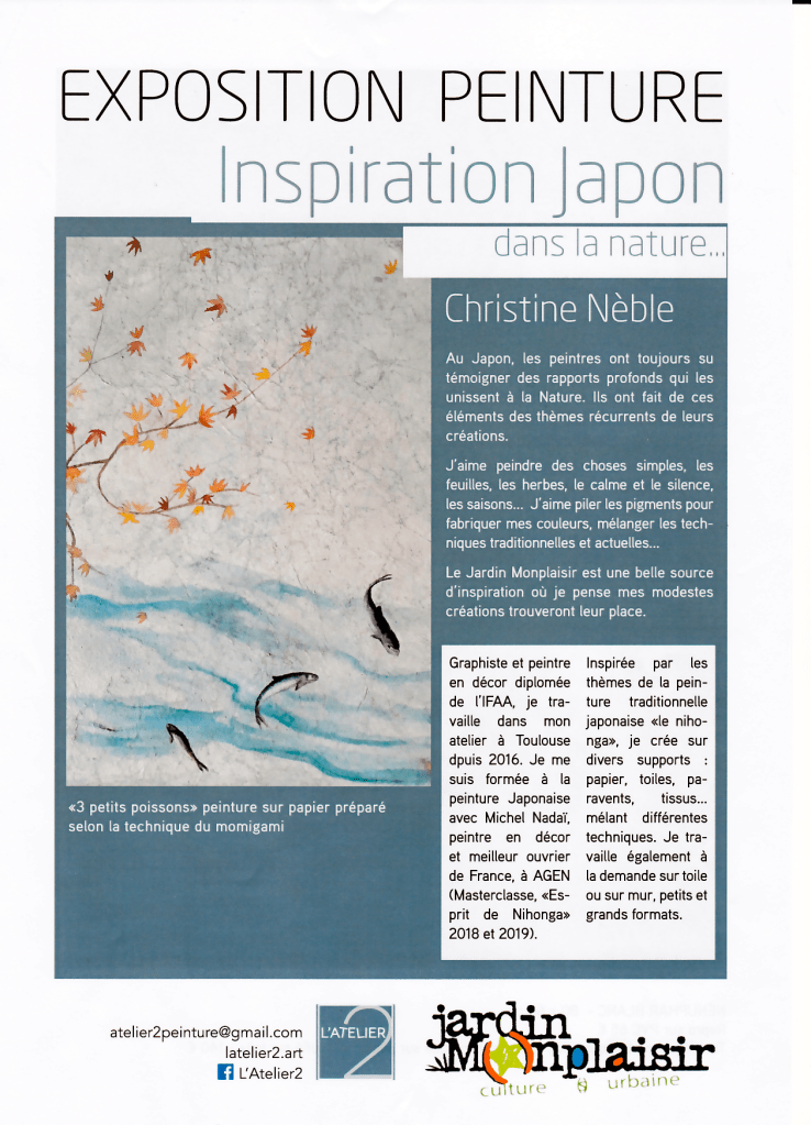 Dé-vernissage de mon expo au jardin Monplaisir samedi 26 mars, à partir de 11h… pour cette occasion j’ai imprimé mon travail sur un support résistant à l’extèrieur… ce qui permet une exposition en plein air